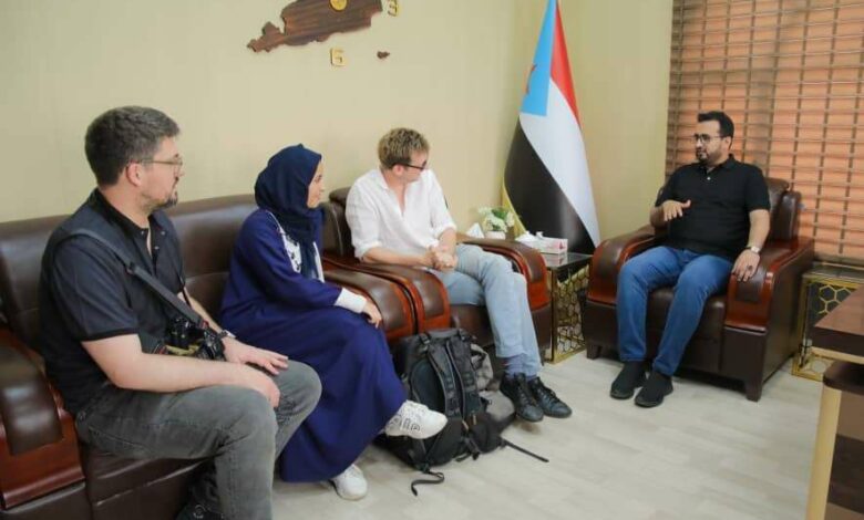 التقى سالم ثابت العولقي رئيس الهيئة الوطنية للإعلام، المتحدث الرسمي باسم المجلس الانتقالي الجنوبي، اليوم الثلاثاء، بمكتبه في العاصمة عدن، الفريق الإعلامي السويسري المكون من الصحفي دانييل سيمون بوخم والمصور دومينيك ويذر.
