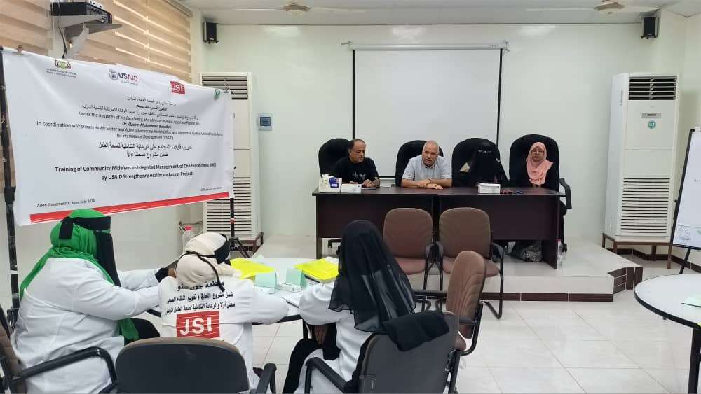 دشن الدكتور أحمد مثنى البيشي مدير عام مكتب الصحة العامة والسكان بالعاصمة عدن امس السبت الموافق 29 يونيو 2024 في قاعة الدكتور ناصر بمستشفى الصداقة بالعاصمة عدن ورشة تدريبية لقابلات المجتمع على الرعاية الصحية التكاملية لصحة الطفل، برعاية وزير الصحة العامة والسكان الدكتور قاسم محمد بحيبح ، بالتنسيق مع قطاع الرعاية الصحية الأولية بوزارة الصحة و مكتب الصحة العامة والسكان __ عدن ، بدعم وتمويل من الوكالة الأمريكية للتنمية الدولية و منظمة جون سنو JSI ، وتنفيذ جمعية الوطنية للقابلات اليمنيات ، وذلك ضمن مشروع “صحتنا أولاً “, بمشاركة قابلات المجتمع بعدد 15 قابلة.