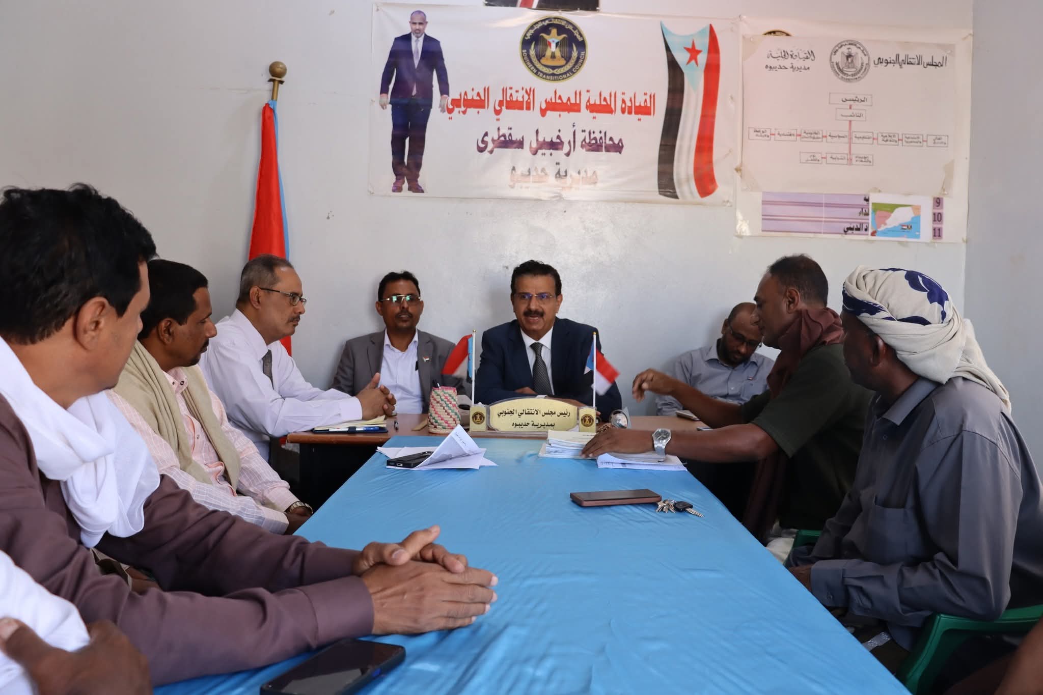 وكان رئيس تنفيذية انتقالي حديبو، سالم الحامد، قد رحب بالفريق، وأعرب عن تقديره لهذه الزيارة التي تعكس اهتمام قيادة المجلس الانتقالي بمتابعة سير العمل ميدانيًا، والاطلاع على التحديات التي تواجه الهيئات التنفيذية في سقطرى، مؤكدًا أن هذه الزيارة تأتي في وقت مهم لتقييم مستوى الأداء، وتعزيز فاعلية العمل التنظيمي بما يسهم في خدمة أبناء المحافظة.