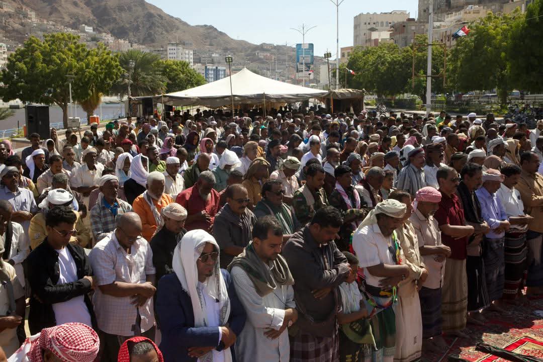 • حشود غفيرة تؤدي صلاة الجمعة في ساحة الاعتصام بالعاصمة عدن
