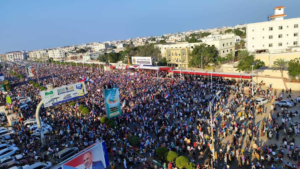 حشود غير مسبوقة في ساحة العروض بعدن تأييداً للمجلس