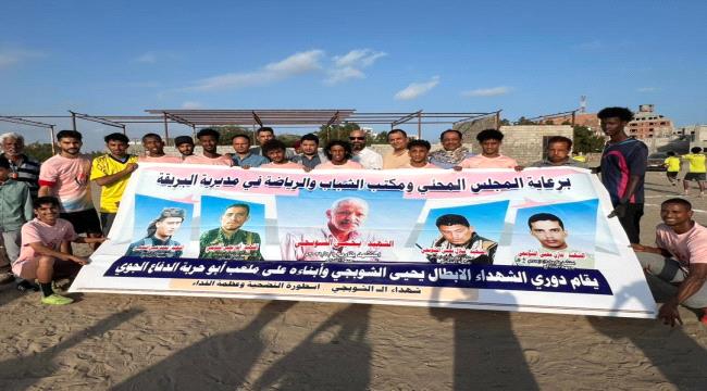 شهدت العاصمة عدن عصر يوم السبت الموافق 14 فبراير 2026 انطلاق فعاليات دوري شهداء الأبطال “القائد يحيى الشوبجي وأبناؤه”، الذي يقام برعاية المجلس المحلي ومكتب الشباب والرياضة بمديرية البريقة، وبدعم من مساهمات مجتمعية تعكس روح التكاتف والاهتمام بالشباب والرياضة.