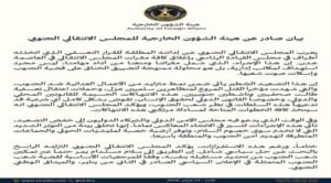 • هيئة الشؤون الخارجية تُدين إغلاق مقرات المجلس الانتقالي في عدن وتعتبره تصعيدًا خطيرًا ضد قضية الجنوب
