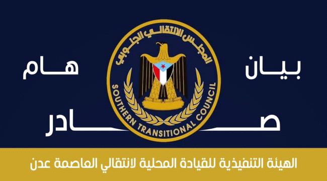 تابعت الهيئة التنفيذية للقيادة المحلية للمجلس الانتقالي الجنوبي بالعاصمة عدن، ببالغ القلق والاستنكار الشديدين، التطورات التصعيدية الخطيرة التي شهدتها العاصمة يومي الأحد والاثنين، والمتمثلة في إقدام قوات مدعومة سعودياً، وبتوجيهات مباشرة من المدعو رشاد العليمي، على محاصرة وإغلاق مقرات مؤسساتنا السياسية والوطنية، ومنع الموظفين من دخول (الأمانة العامة، والجمعية العمومية، وهيئة الشؤون الخارجية) في سلوك تعسفي أرعن.