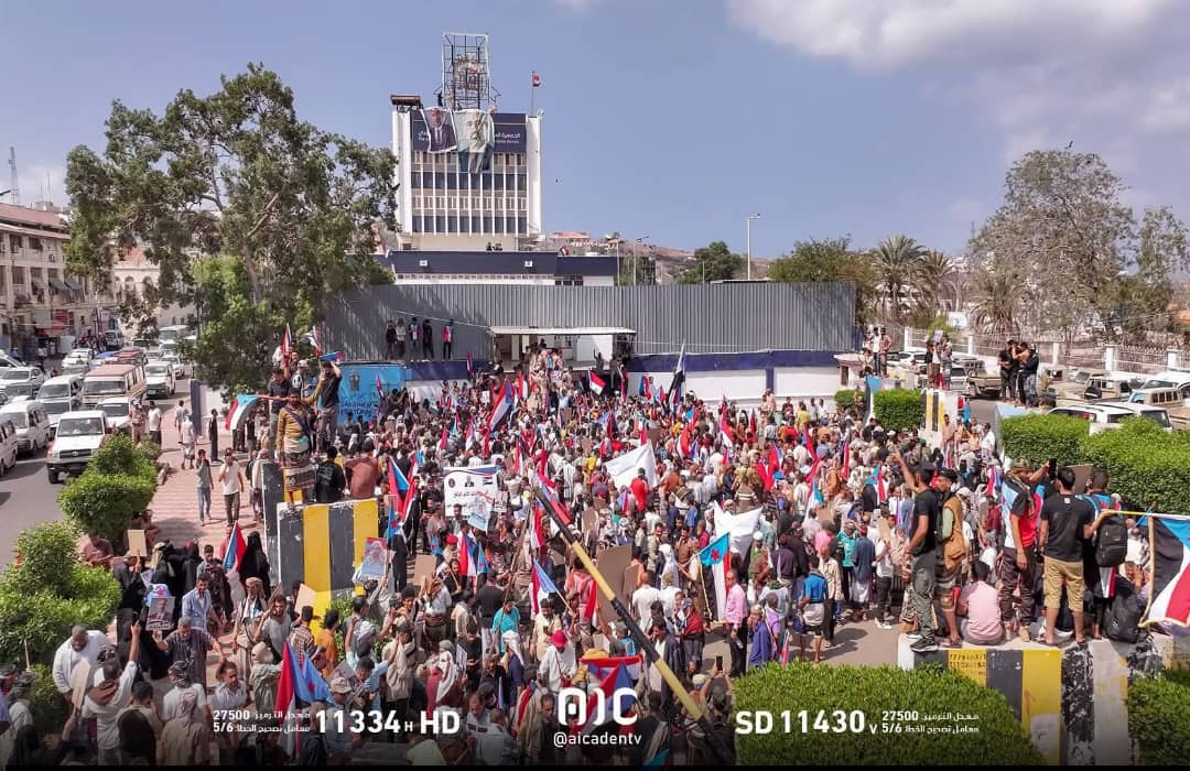 شهدت مديرية التواهي، صباح اليوم، توافد أعداد كبيرة من المتظاهرين إلى محيط مقر الجمعية الوطنية التابعة لـ المجلس الانتقالي الجنوبي، وذلك في إطار فعالية جماهيرية أُطلق عليها “مليونية فتح المقرات”.