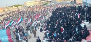 حيث رفع المحتشدون أعلام دولة الجنوب وصور الرئيس القائد عيدروس قاسم الزبيدي واعلام دول التحالف العربي وصور قيادتها وشهداء الإمارات